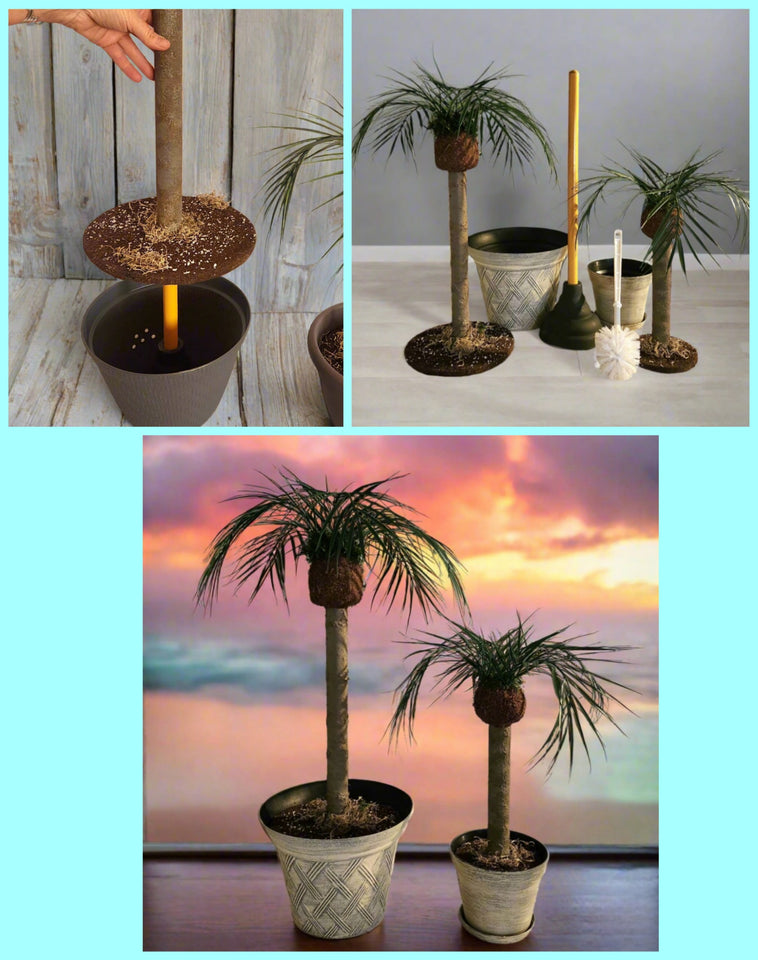 Top your mop or broom with a tall plant. Use the pot as the water bucket. Great for small spaces lacking storage. Select from many different plant varieties.