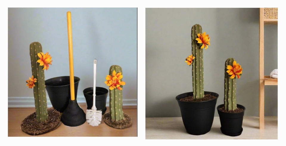 Cover your toilet plunger and scrub brush for an instant makeover. Just slide the "plants" right over the tool handles!