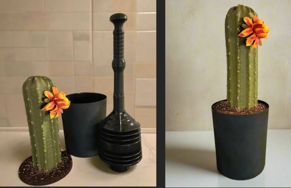 Curious pets or children might touch uncovered toilet plungers or scrub brushes, so place them in your Potty Plants containers (the tools, not the kids).